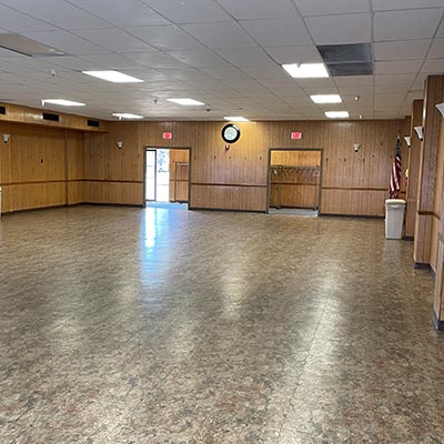 Rentals include use of the banquet hall, bathrooms, and foyer/entrance. Chairs and Tables are available. Setup, cleanup, and teardown are responsiblities of the renter.