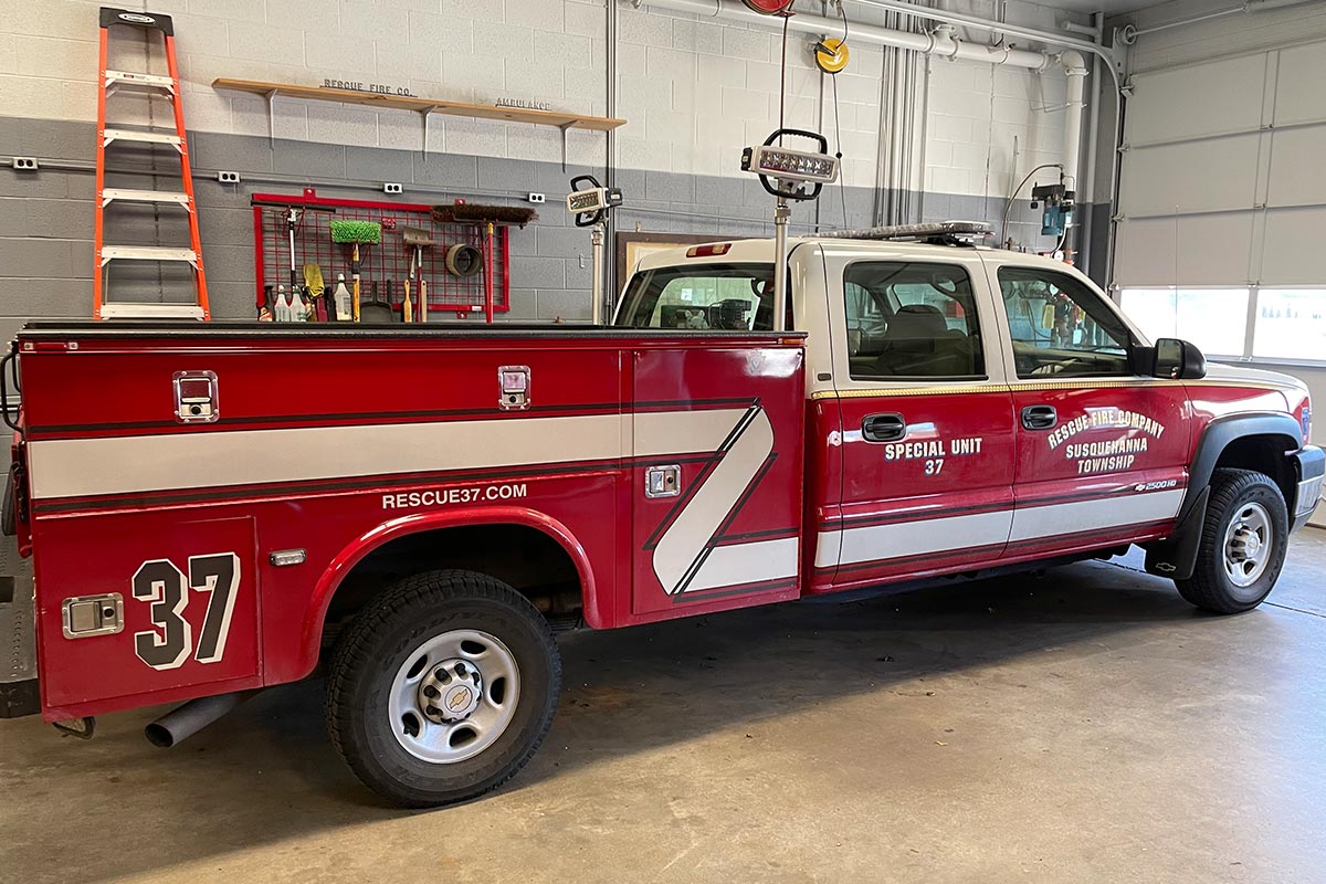 Special Unit 37 is a 2004 Chevy Silverado 2500 with seating for 5. This unit is capable of towing boats from our fleet. It is equipped with water rescue equipment such as PFDs, dry suits, night vision goggles as well as medical equipment and an AED. The Shop Body was donated by PSI in our first due district. This vehicle was assembled by the members of Rescue Fire Company.
