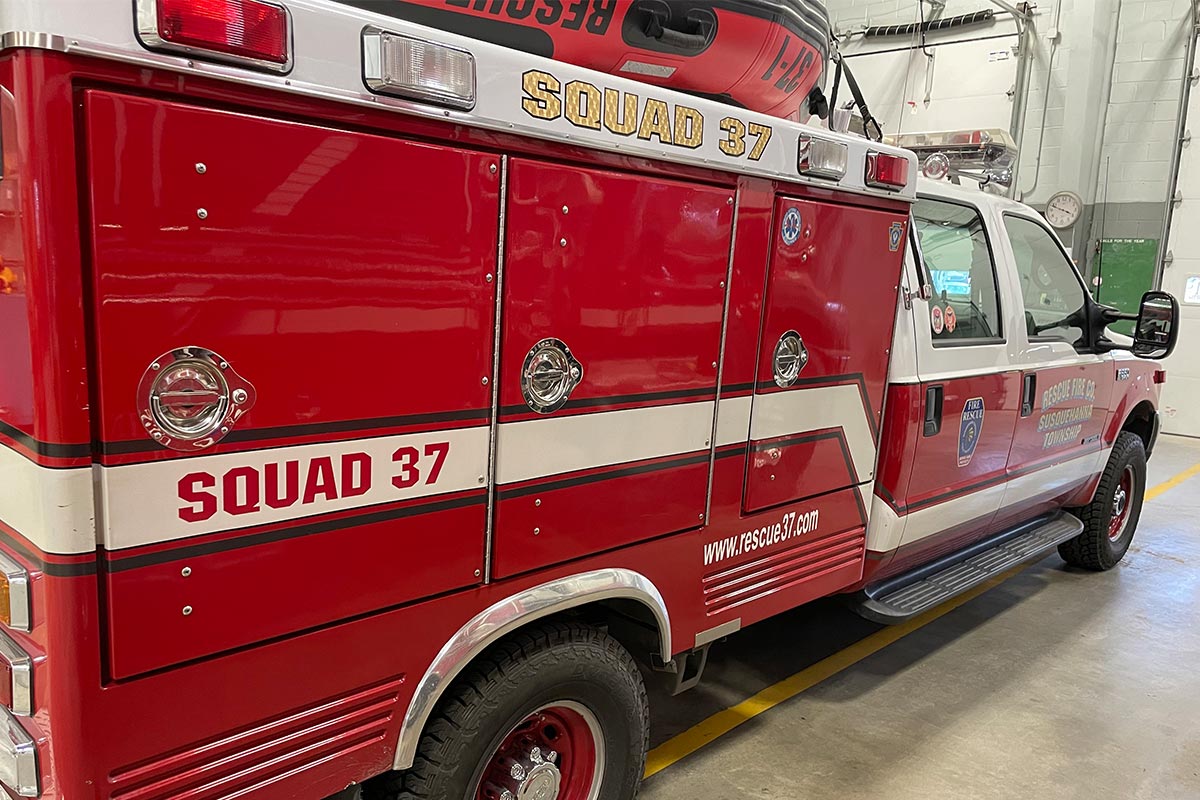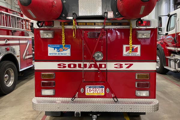 Squad 37 is a multi-use support vehicle. It is used for water rescue support activities as well as medical response and staff transport. This unit carries a wide variety of water rescue equipment, including PFDs, dry suits, ropes, and rigging.